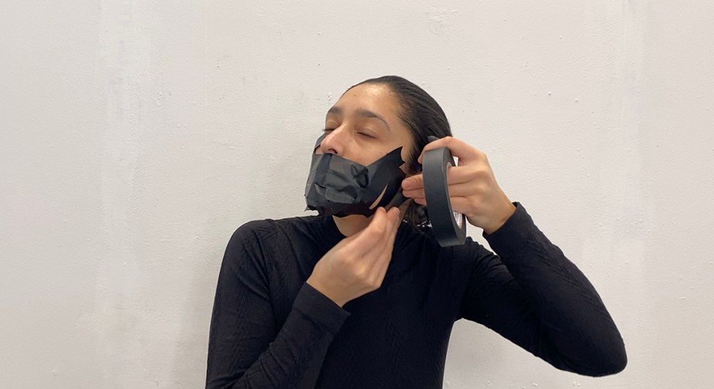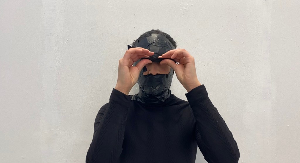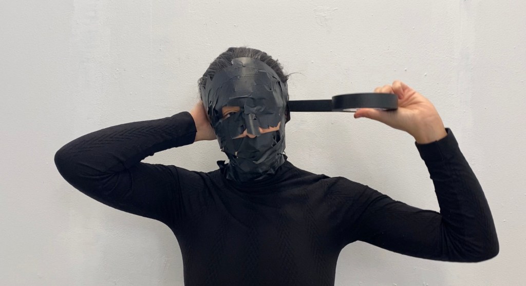 documentación en video, 10:36 min., 1920 × 1080p., cinta de enmascarar sobre piel humana.