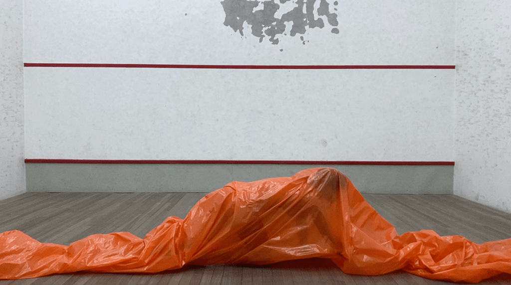 video documentation (8), 02:23, 01:59, 03:50, 03:21, 02:52, 03:07, 02:42, 02:29 min., 1920 × 1080p., polyethylene sheet and human body.