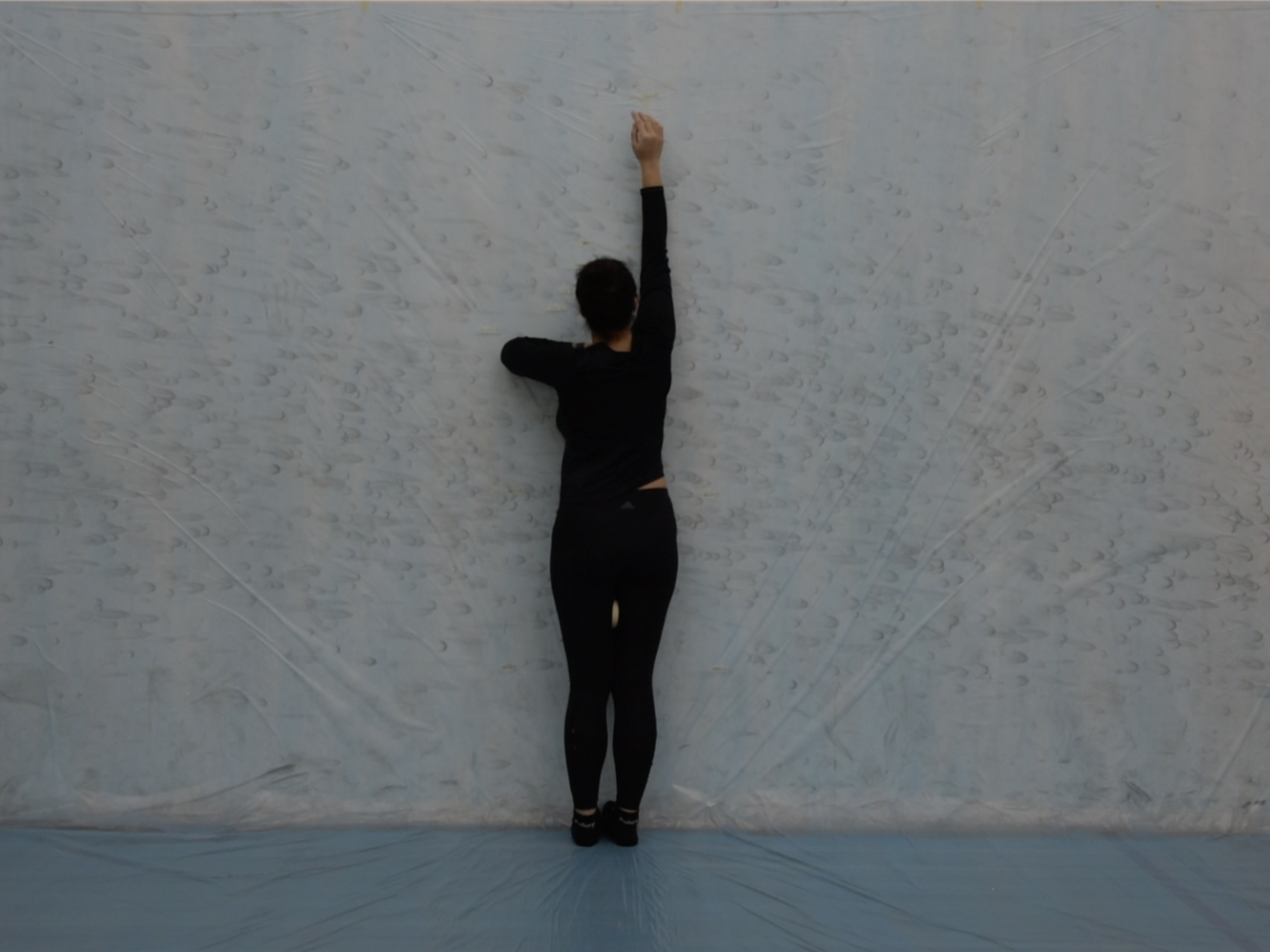 video documentation, 48:59 min., 1920 × 1080p., polyethylene sheet, construction tape and human body in cotton clothes.